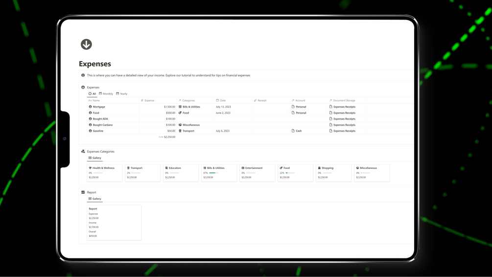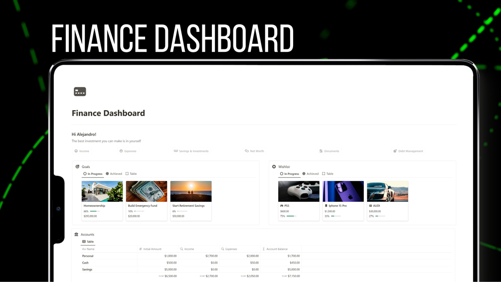 Finance Dashboard for Notion